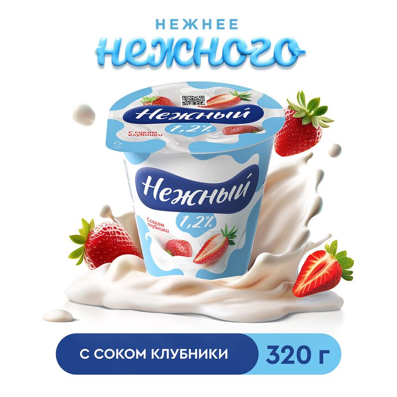 Йогуртный продукт, НЕЖНЫЙ, с соком клубники, 1,2 %, 320 г