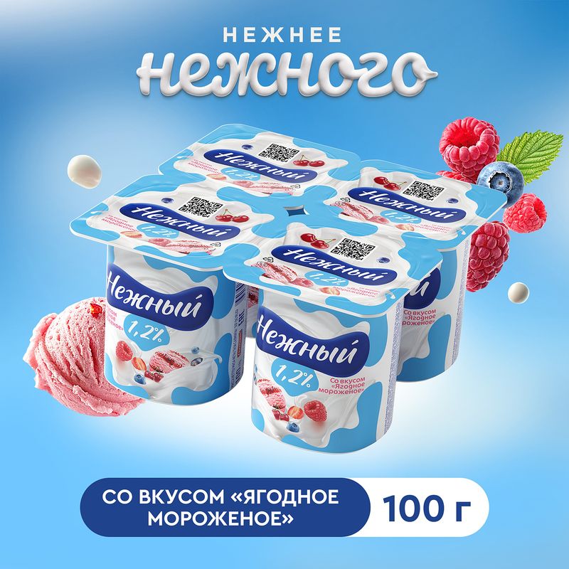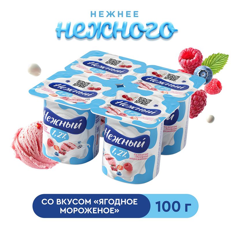 Йогуртный продукт, НЕЖНЫЙ, ягодное мороженое, 1,2%, 100 г
