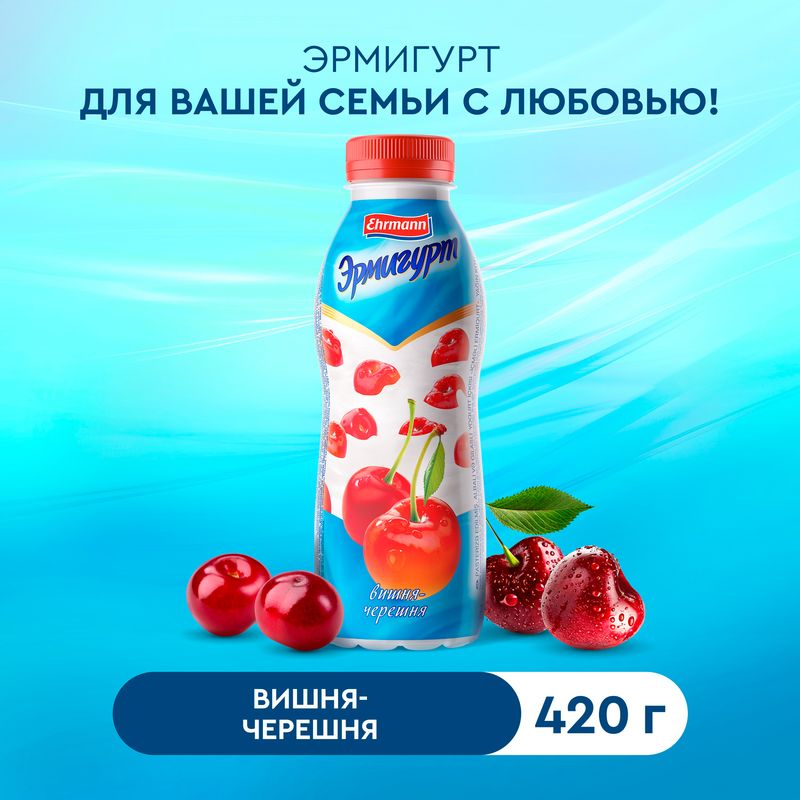 Питьевой йогуртный продукт "Эрмигурт", Ehrmann, вишня/черешня, 1,2%, 420 г