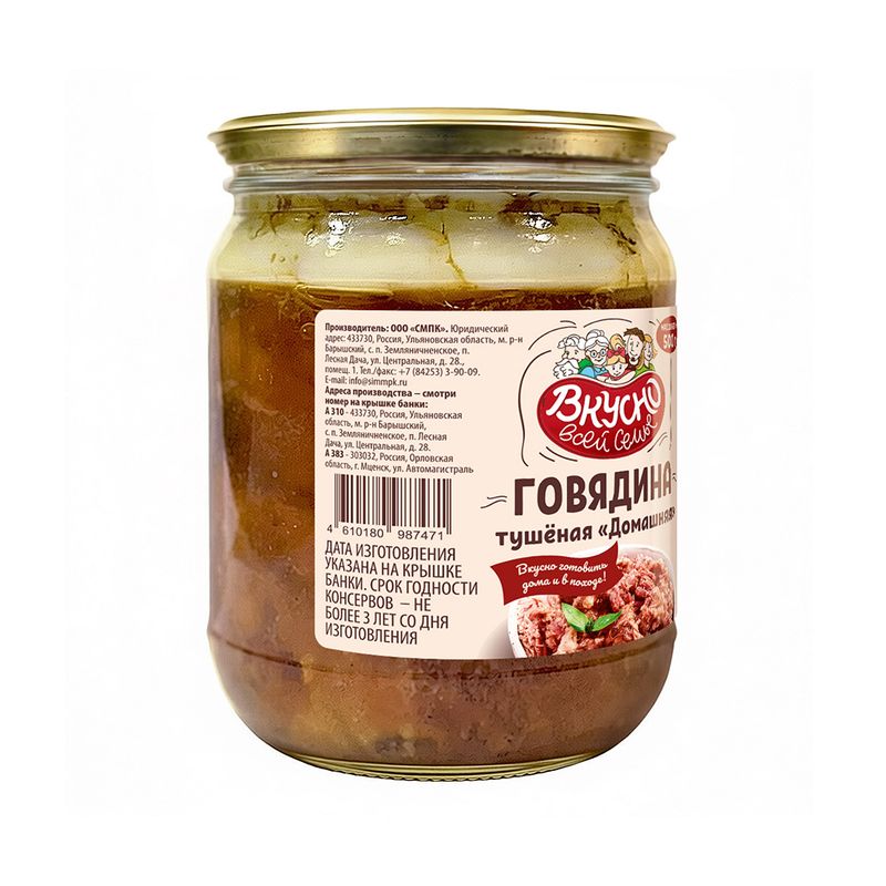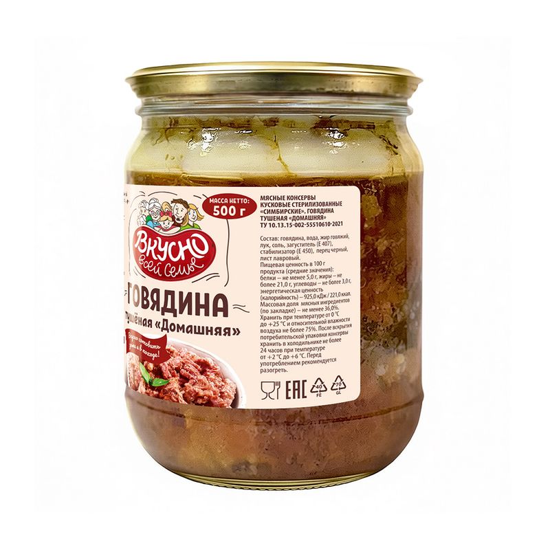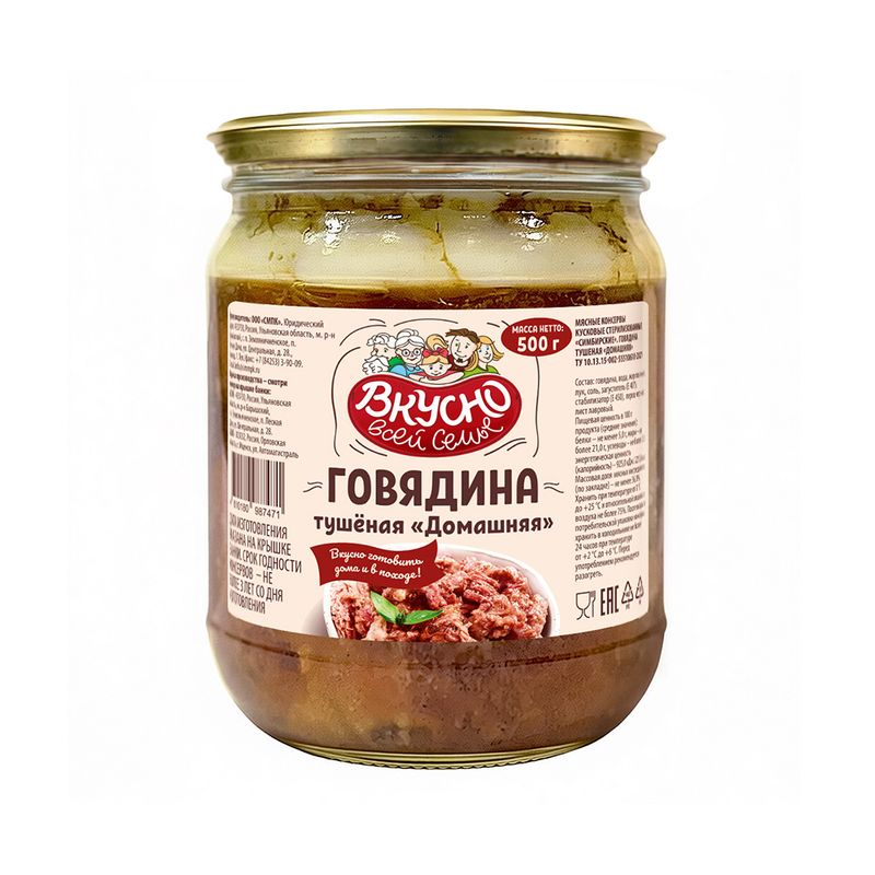 Говядина тушёная "Домашняя", Вкусно всей семье, 500 г