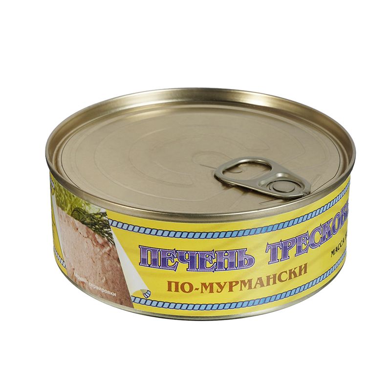 Консервы рыбные стерилизованные "Печень тресковых рыб по-мурмански" – это вкусный и питательный продукт, готовый к употреблению. Масса нетто: 230 г.
