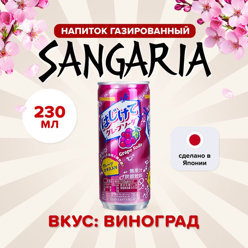Напиток газированный, Sangaria — искристый привет из Японии! Оригинальные вкусы, вдохновлённые азиатскими хитами: апельсин, виноград и классический Рамунэ с цитрусовой ноткой. Объём: 230 мл. Товар представлен в ассортименте.