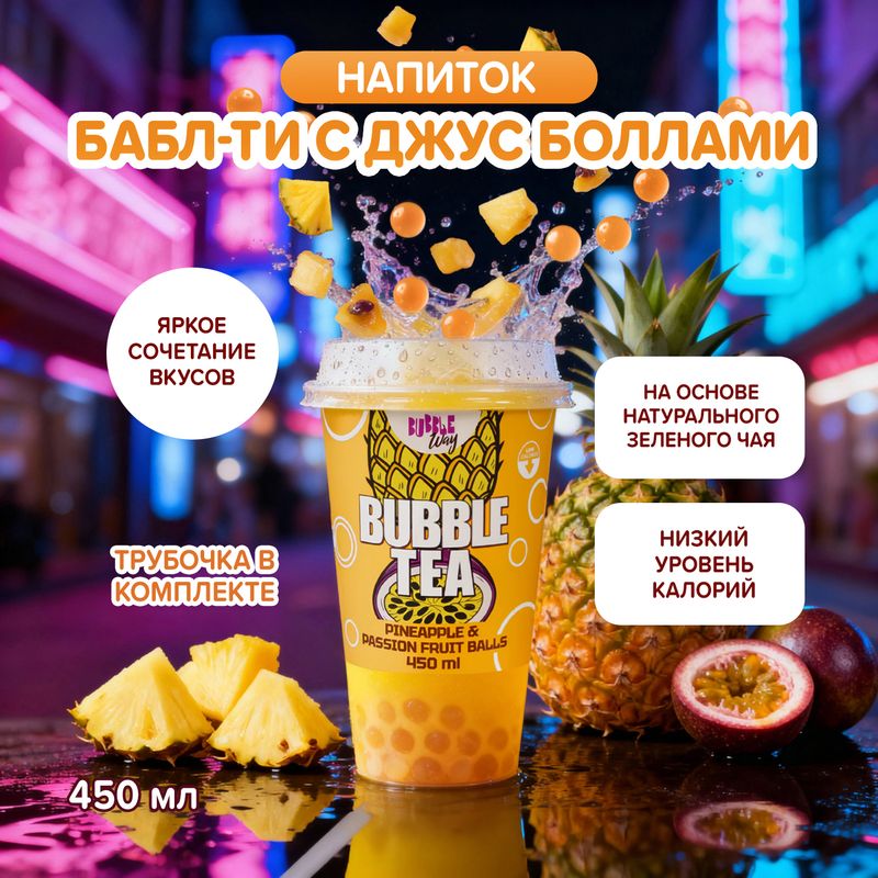 Напиток негазированный, Bubble Way – яркое сочетание натурального зелёного чая и фруктовых шариков. Мало калорий, много вкуса! Трубочка в комплекте. Объём: 450 мл. Товар представлен в ассортименте.