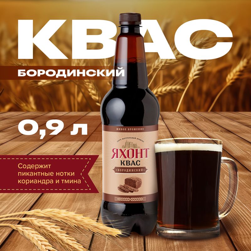 Квас "Бородинский", Яхонт – традиционный напиток живого брожения, который отлично утоляет жажду! Содержит пикантные нотки кориандра и тмина. Объём: 0,9 л.