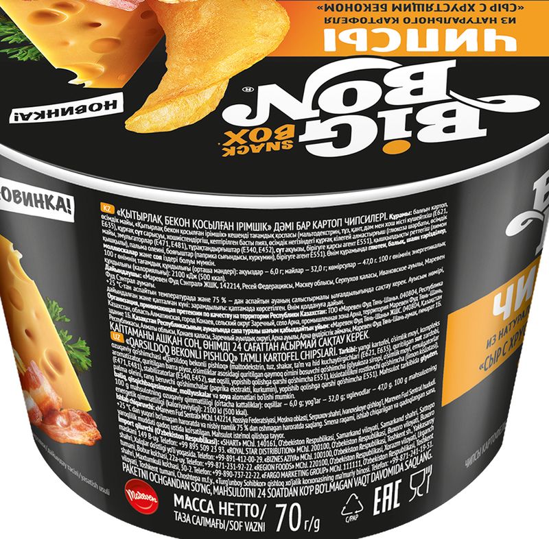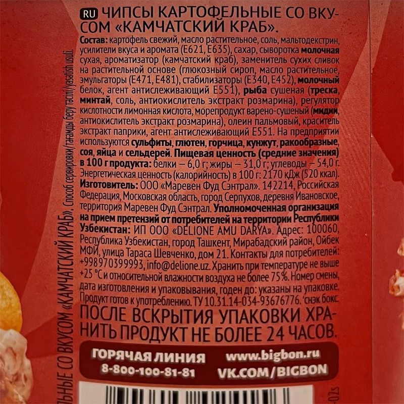 Чипсы картофельные, BigBon — хрустящие ломтики с насыщенным вкусом. В удобной упаковке. Масса нетто: 70 г. Товар представлен в ассортименте.