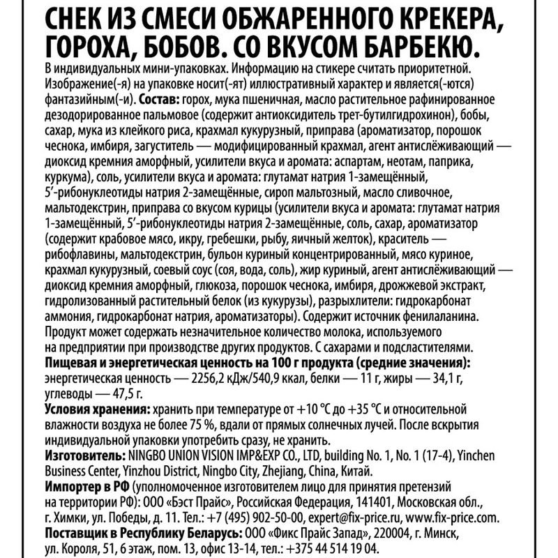 Снек из смеси крекера, гороха и бобов, со вкусом барбекю, 75 г