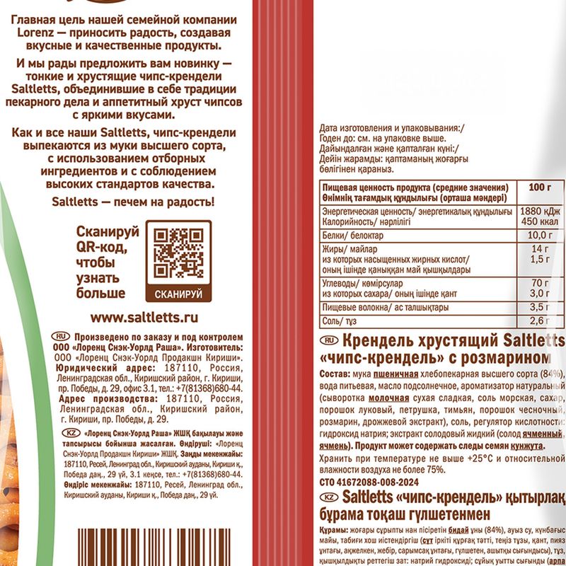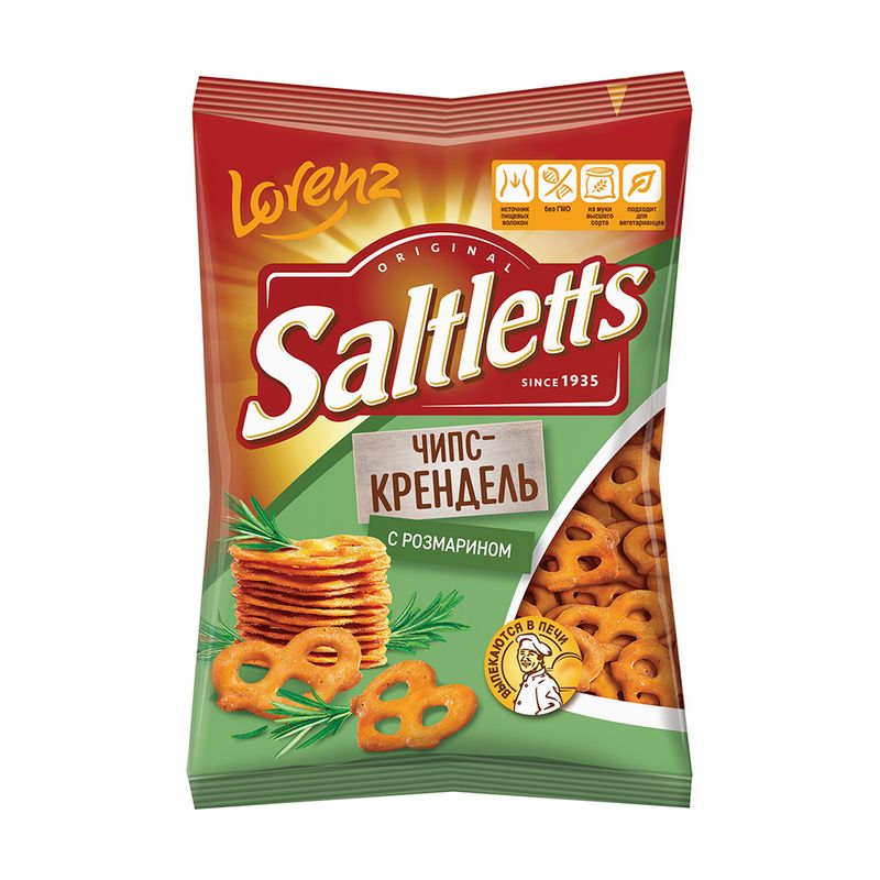 Крендель хрустящий "Чипс-крендель", Saltletts – это сочетание яркого вкуса и аппетитного хруста чипсов! Выпекается в печи из муки высшего сорта. Масса нетто: 70 г. Товар представлен в ассортименте.