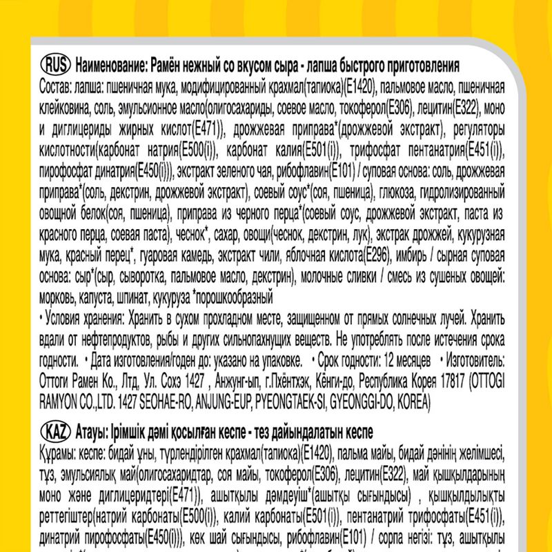 Лапша быстрого приготовления "Рамён", Оттоги, со вкусом сыра – аппетитное блюдо в корейском стиле! Сделано в Южной Корее. Способ приготовления указан на упаковке. Масса нетто: 111 г.