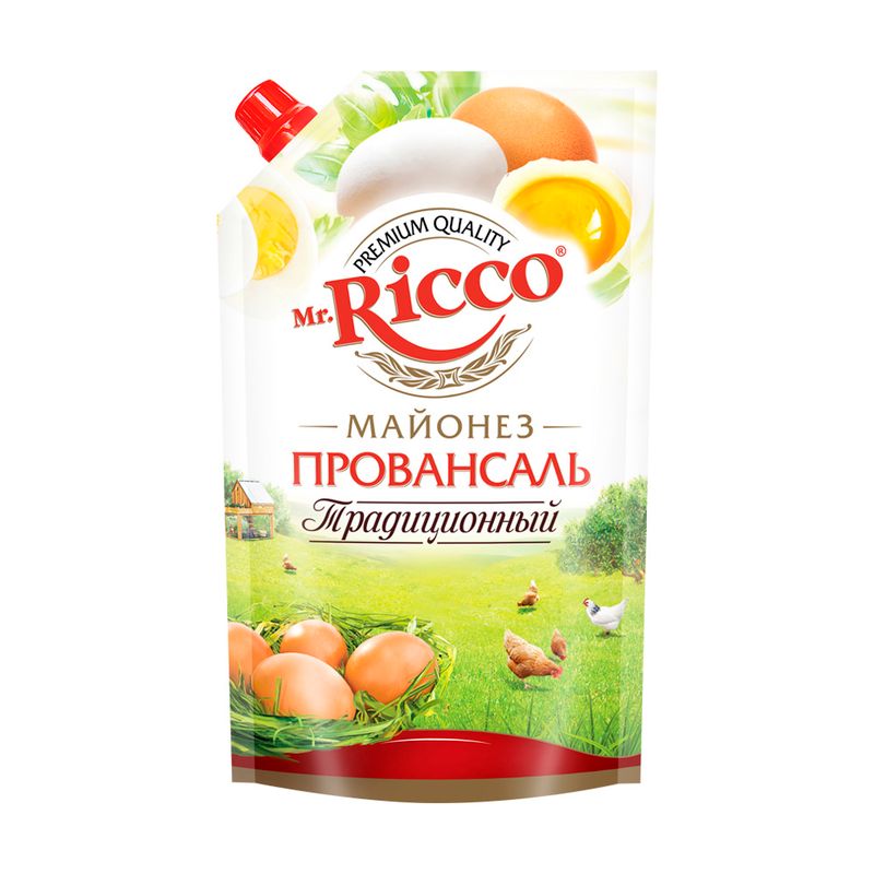 Майонез "Провансаль Традиционный", Mr. Ricco, будет гармоничным дополнением к любому блюду. Без использования консервантов, крахмала и ароматизаторов. Объём: 350 мл.