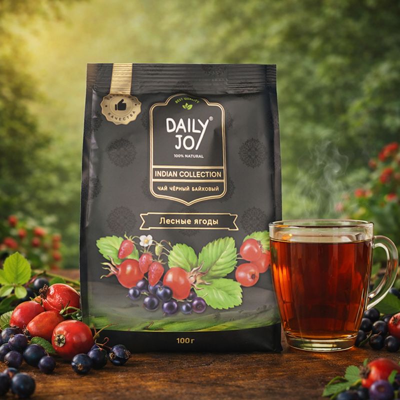 Чай чёрный "Лесные ягоды", Daily Joy, дарит бодрость и уют, благодаря гармоничному балансу пряных и ягодных оттенков. Масса нетто: 100 г.