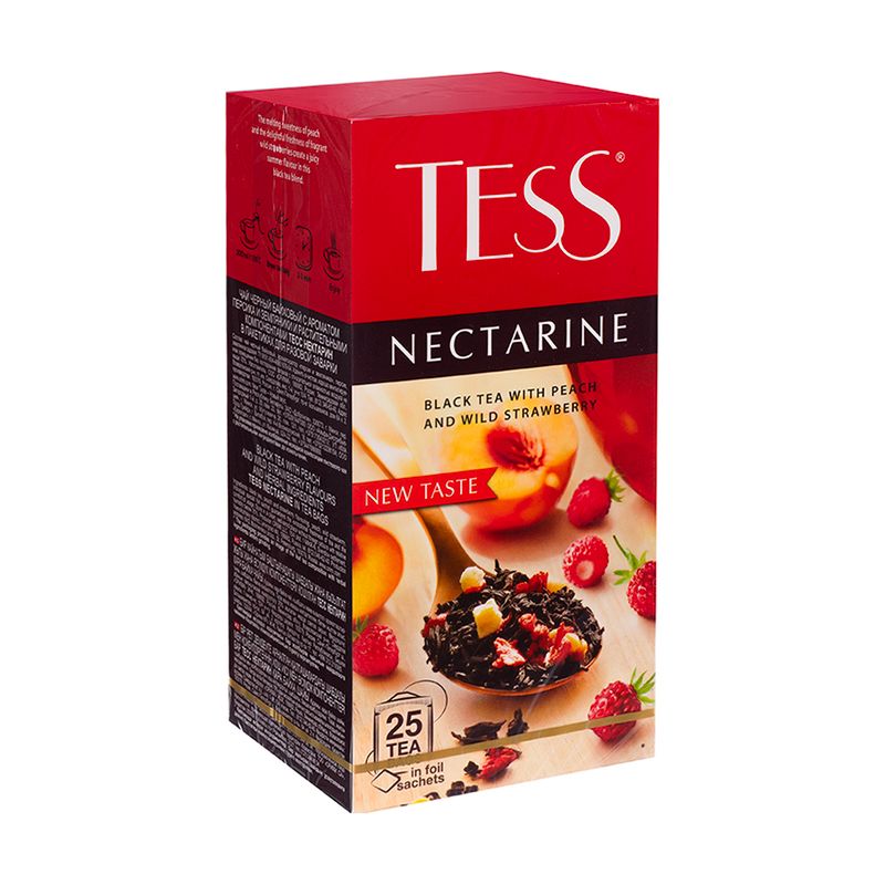Чай чёрный "Нектарин", TESS – ароматная композиция с тающей сладостью персика и освежающими нотами земляники. Сочный вкус создаёт летнее настроение и подходит для чаепития в любое время дня. В упаковке 25 пакетиков по 1,5 г. Масса нетто: 37,5 г.