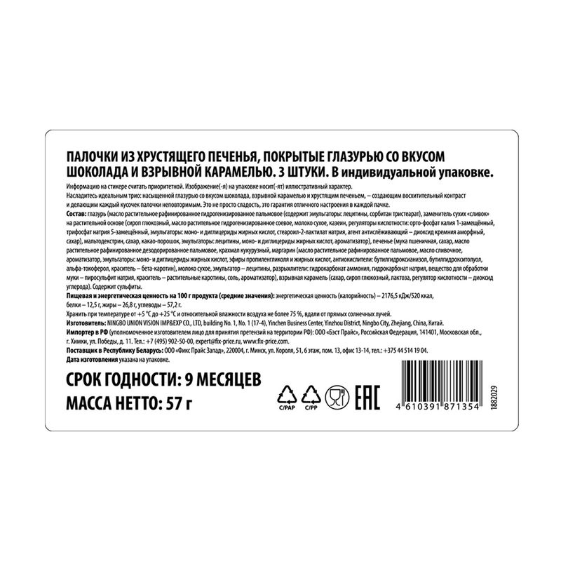 Палочки со взрывной карамелью в глазури создают приятное потрескивание и дарят яркие вкусовые впечатления! Масса нетто: 57 г. Товар представлен в ассортименте.