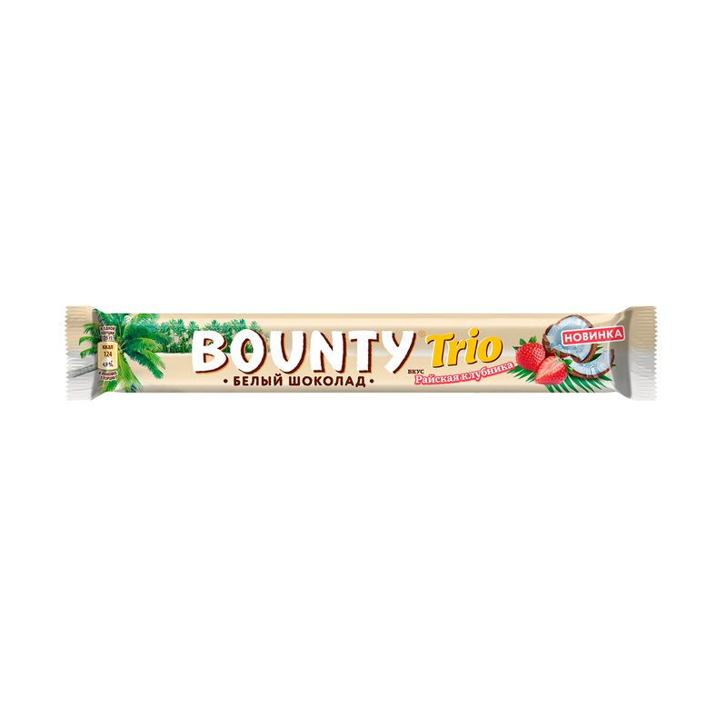 Шоколадный батончик, Bounty Trio, клубника в белом шоколаде, 78 г