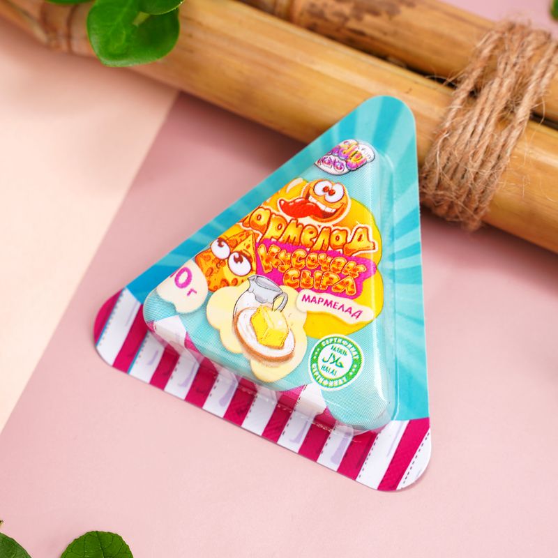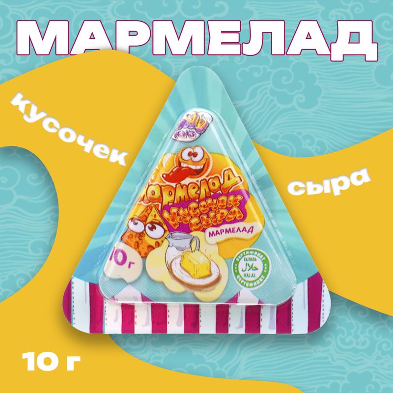 Мармелад "Кусочек сыра" – забавная сладость в виде треугольного кусочка сыра! Масса нетто: 10 г.
