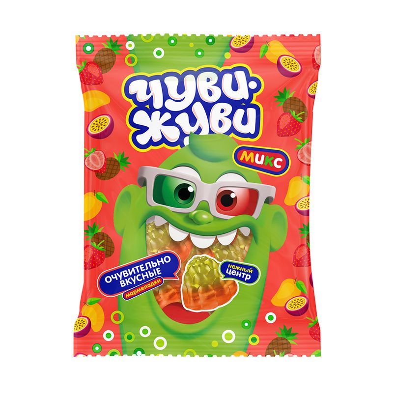 Мармелад жевательный, Чувижуви, с нежной начинкой порадует Вас миксом фруктовых вкусов! Масса нетто: 70 г.