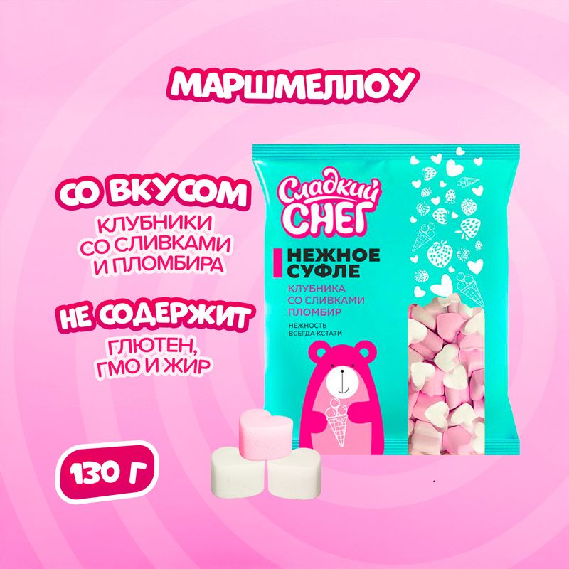 Маршмеллоу, Сладкий снег, 130 г, со вкусом клубники со сливками и пломбира