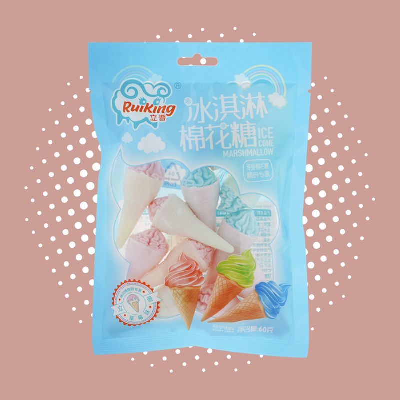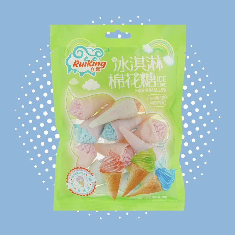 Зефир жевательный "Айс коне" – сладкое удовольствие для настоящих сладкоежек! Мягкое, воздушное маршмеллоу в хрустящем вафельном рожке выглядит как маленькое мороженое и тает во рту. Масса нетто: 60 г. Товар представлен в ассортименте.