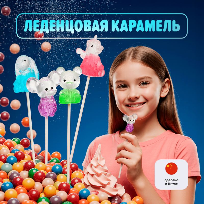 Карамель леденцовая в оригинальной форме и с фруктовым вкусом порадует маленьких сладкоежек! Внутри некоторых леденцов есть разноцветные шарики. Масса нетто: 28 г. Товар представлен в ассортименте.