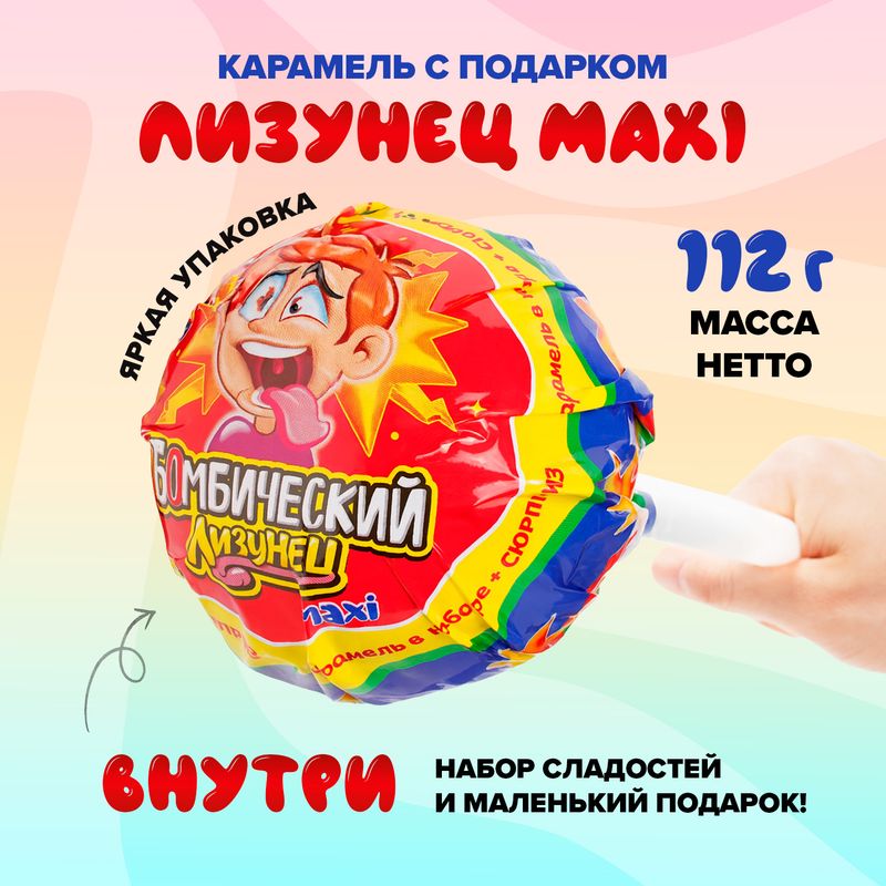 Карамель с подарком "Лизунец MAXI", Канди клаб, 112 г, в ассортименте