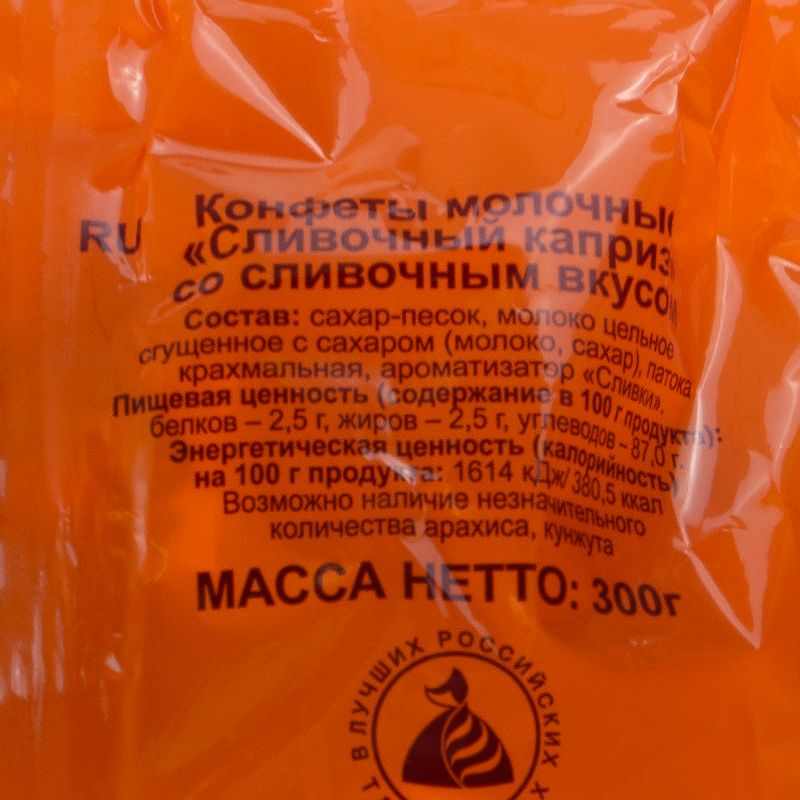 Конфеты молочные "Сливочный каприз" порадуют нежным сливочным вкусом всю семью! Отлично подходят к чаю или кофе. Масса нетто: 300 г.