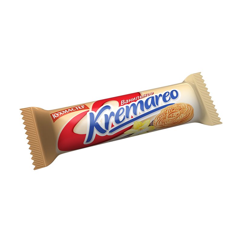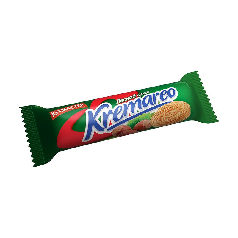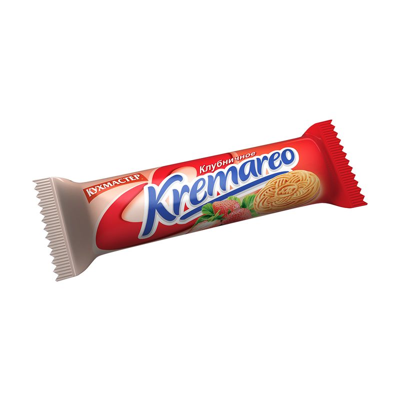 Печенье сахарное "Kremareo", Кухмастер, в компактной упаковке так удобно брать с собой в качестве перекуса к чаю! С нежной начинкой. Масса нетто: 100 г. Товар представлен в ассортименте.