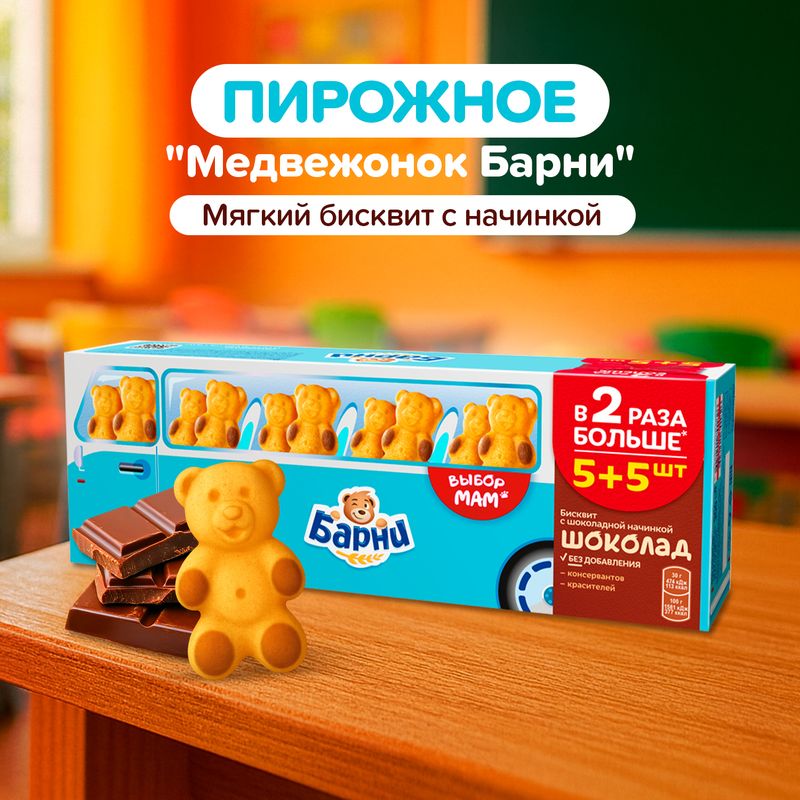 Пирожное бисквитное "Медвежонок Барни", 10 бисквитов, 300 г