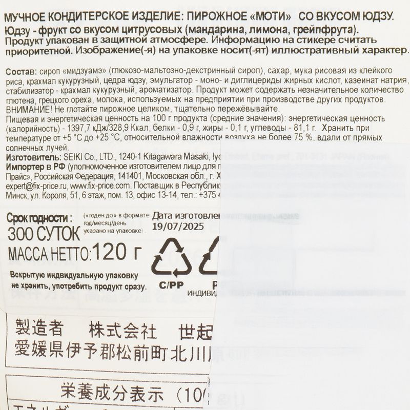 Пирожное "Моти" – это оригинальное угощение с мягкой оболочкой из рисовой муки и нежной начинкой внутри. Лёгкий десерт станет отличным дополнением к чаю или кофе. Произведено в Японии. Масса нетто: 120 г. Товар представлен в ассортименте.