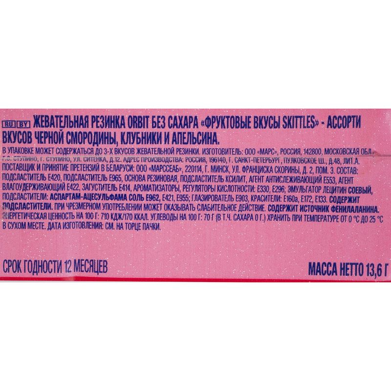 Жевательная резинка "Фруктовые вкусы Skittles", Орбит, 13,6 г