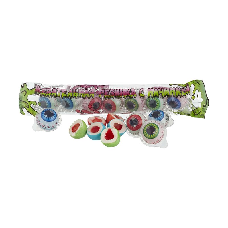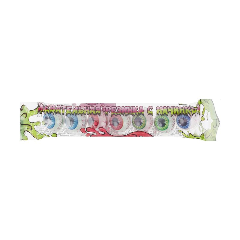 Резинка жевательная с начинкой – забавное лакомство с яркими вкусами! В упаковке 7 жевательных резинок в виде глаз. Масса нетто упаковки: 84 г.