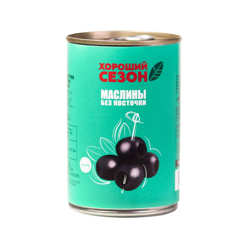 Маслины без косточки консервированные, Хороший сезон, станут прекрасным дополнением для салатов и основных блюд. Также подходят в качестве самостоятельной закуски. Консервированные, стерилизованные. Масса нетто: 280 г.