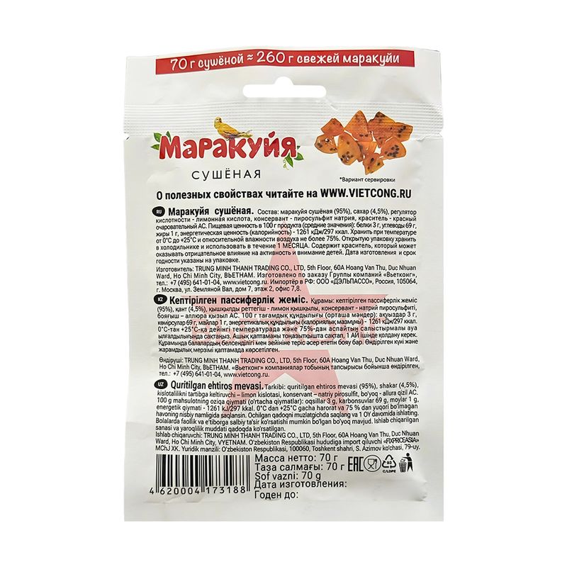 Маракуйя сушеная, ВЬЕТКОНГ, 70 г