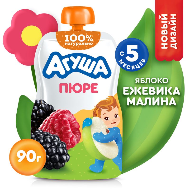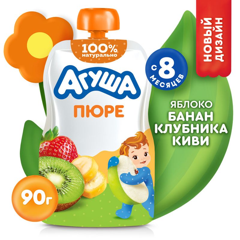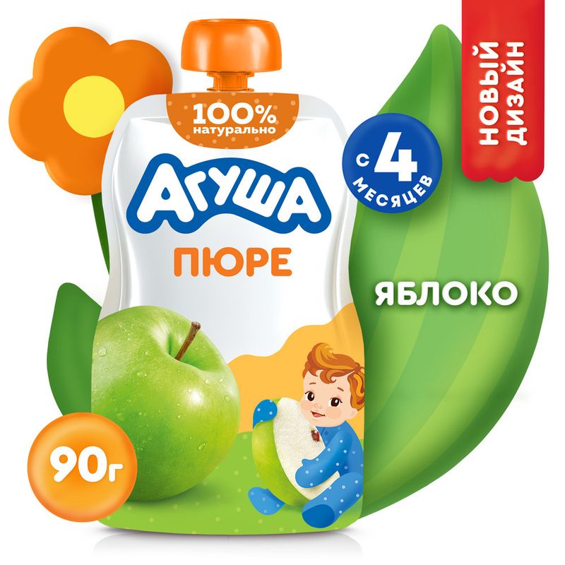 Фруктовое пюре, Агуша, 90 г, в ассортименте