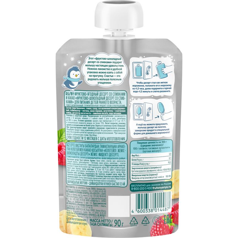 Фруктово-ягодный десерт, ФрутоKids, с молоком – вкусная радость для ребёнка! Можно употреблять десерт в жидком виде или заморозить и превратить в настоящее мороженое! Нежное лакомство в удобное упаковке можно взять с собой на прогулку. Масса нетто: 90 г.