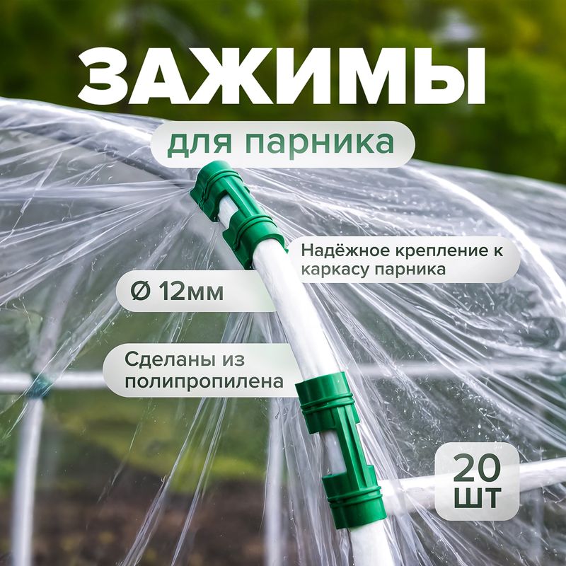 Зажим для крепления плёнки к каркасу парника, АгроСнабРитейл – это отличное приобретение для любого садовода! В упаковке 20 зажимов размером 60х15х15 мм. Диаметр: 12 мм. Состав: полипропилен. Товар представлен в ассортименте.