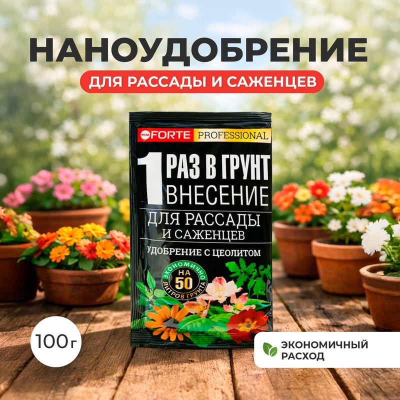 Наноудобрение для рассады и саженцев, BONA FORTE, с цеолитом ускоряет рост растений и содержит наногранулы для лучшего усвоения! Подходит для рассады, открытого грунта, заправки теплиц и для пересадки комнатных растений. Экономичный расход. Перед применением ознакомьтесь с инструкцией и мерами предосторожности на упаковке. Масса нетто: 100 г.