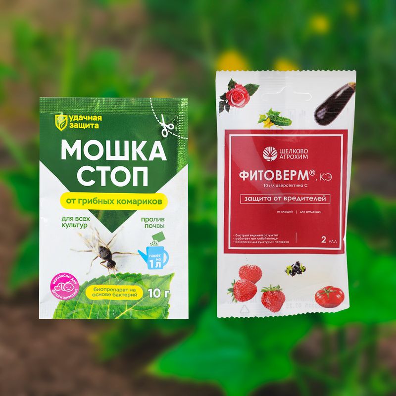 Препарат бактериальный "Мошка Стоп", Удачная защита, предназначен для защиты растений от грибных комариков (сциарид) и почвенных мушек. Применяется на рассаде цветочных и овощных культур и комнатных растениях. Перед применением ознакомьтесь с инструкцией и мерами предосторожности на упаковке. Масса нетто: 10 г.