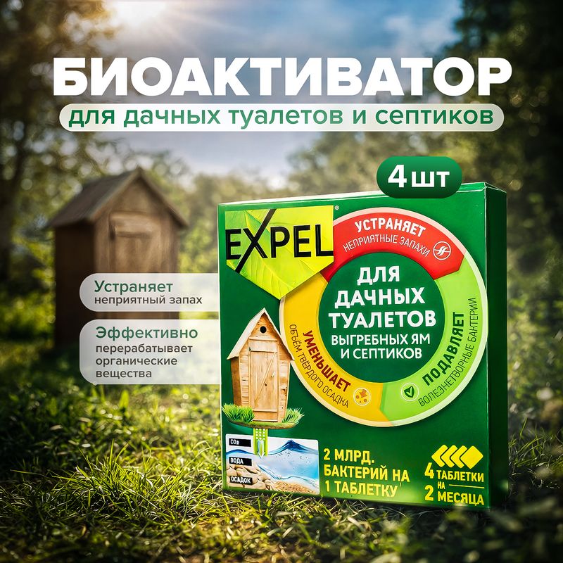 Биоактиватор для дачных туалетов и септиков, Expel, 4 таблетки, 80 г