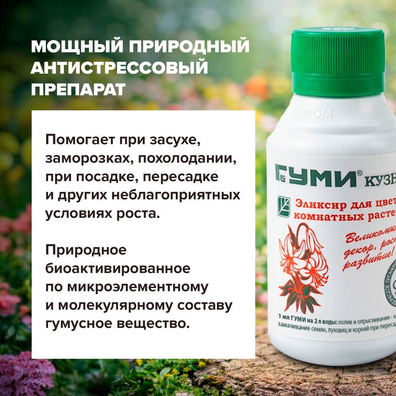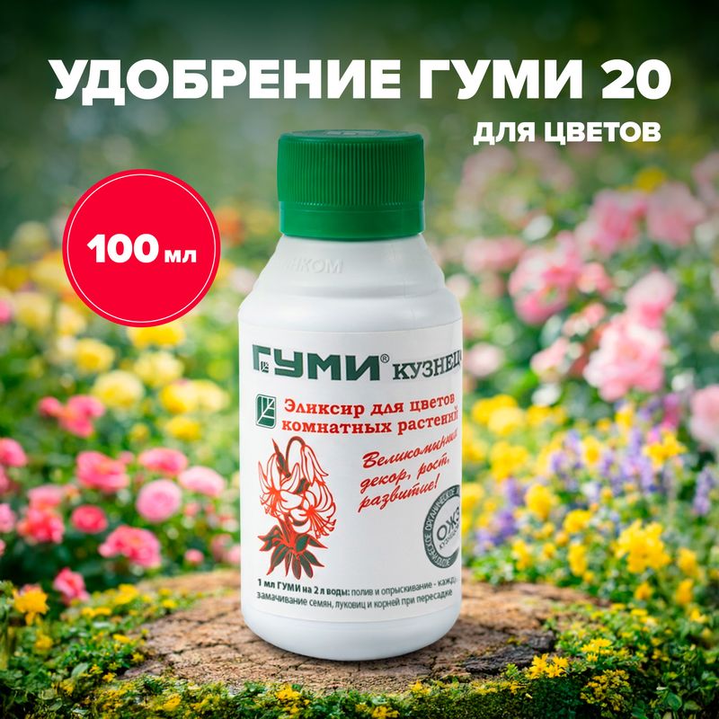 Удобрение для цветов "ГУМИ20", предназначено для подкормки комнатных и садовых растений. Средство стимулирует рост и развитие, поддерживает активное цветение и помогает растениям легче переносить стрессовые условия. Подходит для регулярного ухода и использования в течение всего сезона. Перед использованием ознакомьтесь с инструкцией и мерами предосторожности на упаковке. Объём: 100 мл.