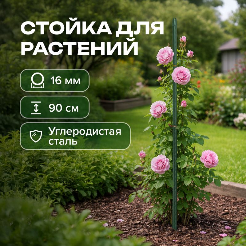 Стойка декоративная для растений, GreenArt, упростит уход за вьющимися культурами. Подходит для подвязки растений с длинным стеблем. Органично дополнит оформление Вашего садового участка благодаря зелёной расцветке. Высота: 90 см. Диаметр: 16 мм. Состав: углеродистая сталь, полиэтилен, полипропилен.