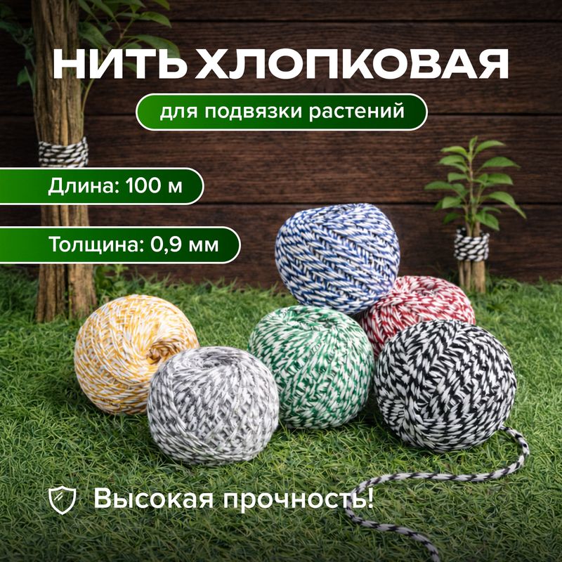Нить хлопковая для подвязки растений, GreenArt, 100 м, в ассортименте