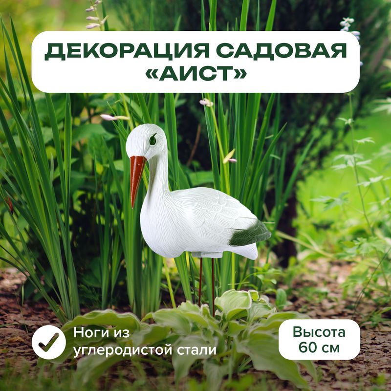 Декорация садовая "Аист", GreenArt – изящное украшение для Вашего сада! В комплект входят фигура аиста и две ноги из углеродистой стали. Размер набора: 16х10х30 см. Высота фигуры в собранном виде: 60 см. Состав: полипропилен, углеродистая сталь.