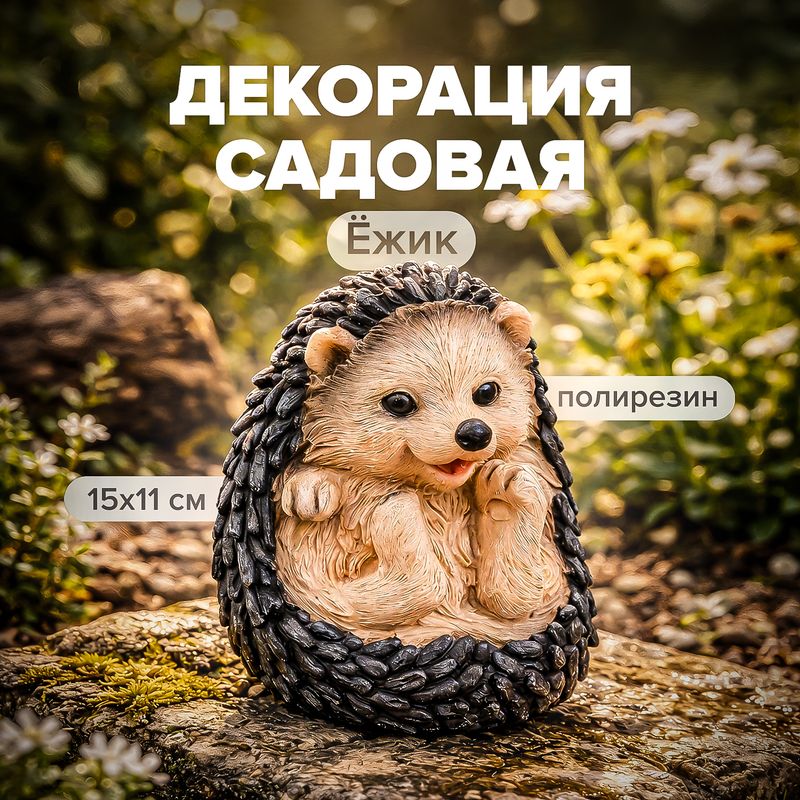 Декорация садовая "Ёжик", GreenArt, 15 см, в ассортименте