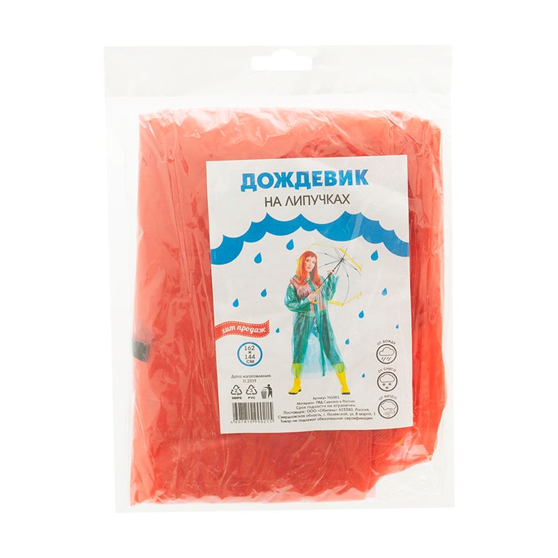 Дождевик на липучках из полиэтилена высокого давления. Материал водонепроницаем, поэтому хорошо защищает одежду от излишков влаги. Подойдет как для женщин, так и для мужчин. Широкий крой не сковывает движение. Компактный дождевик легко помещается в сумку. Универсальный, его удобно использовать на прогулках по городу и при активном отдыхе. Дождевик на липучках защитит Вас от ветра, дождя и снега! Размеры: 162х144 см. Состав: ПВД. Цвета в ассортименте.