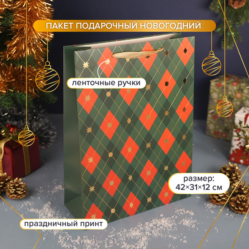 Пакет подарочный новогодний, Снежное кружево, 42х31х12 см, в ассортименте