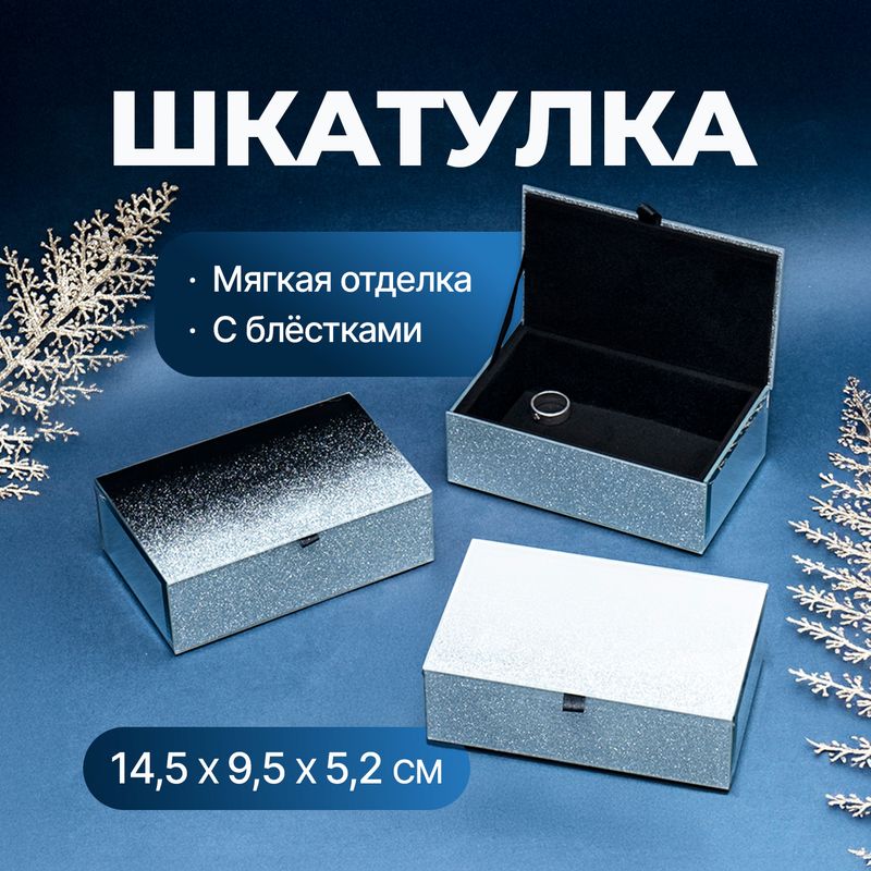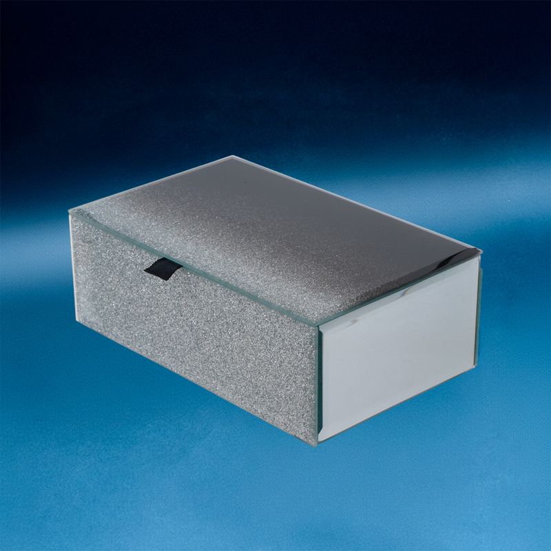 Шкатулка подходит для хранения украшений и аксессуаров. Внутри одно отделение с мягким покрытием. Градиент из блёсток и зеркальные грани придают изделию изящный и элегантный вид. Прекрасный подарок для себя и близких в канун праздников! Размер: 14,5х9,5х5,2 см. Состав: стекло, МДФ, полиэстер. Товар представлен в ассортименте.