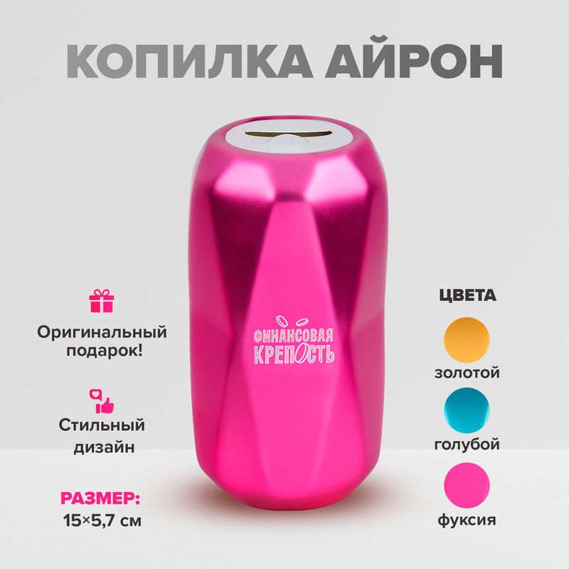 Копилка "Айрон" в стильном дизайне станет отличным подарком! Яркий и оригинальный предмет декора будет замечательно смотреться на полке, комоде или рабочем столе. Размер: 15х5,7 см. Состав: керамика, ПВХ. Цвета в ассортименте: голубой, золотой и фуксия.
