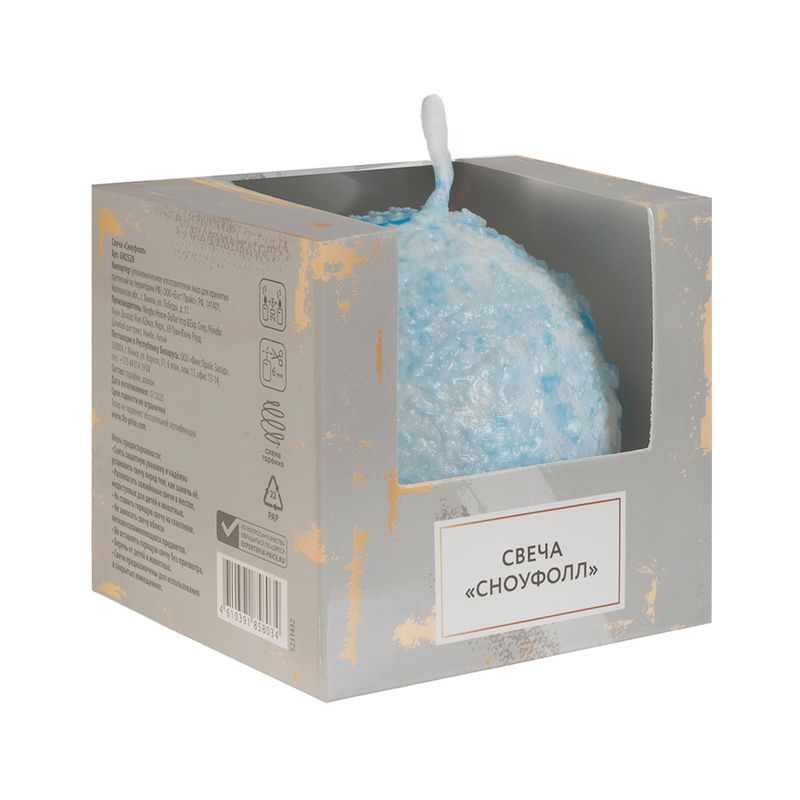 Свеча "Сноуфолл" в форме снежка наполнит Ваш дом уютной и тёплой атмосферой! Свеча красиво плавится, сгорая по спирали. В ассортименте представлены свечи в бело-голубом и белом цветах. Размер: 10х10х9,5 см. Состав: парафин, хлопок. Перед использованием ознакомьтесь с мерами предосторожности на упаковке. Соблюдайте правила пожарной безопасности!