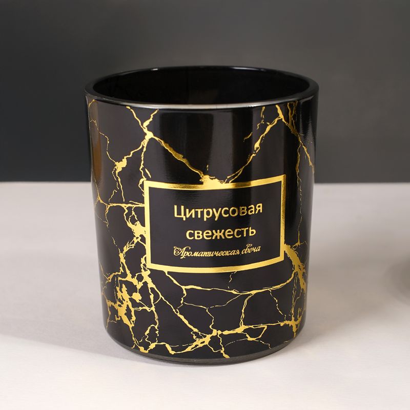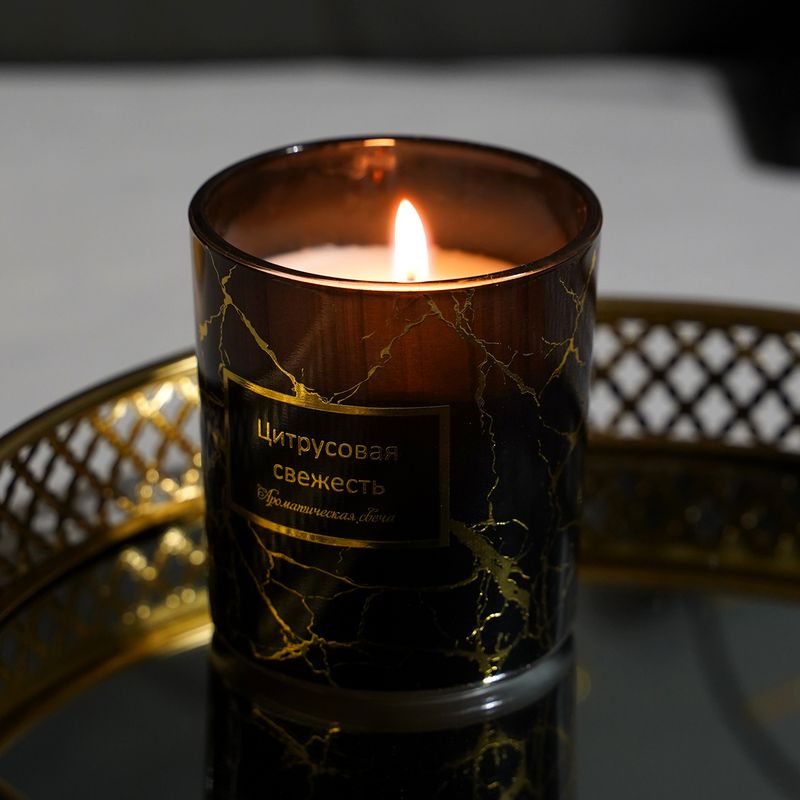 Ароматическая свеча в стакане "Борраска" наполнит комнату утончённым ароматом и поможет создать тёплую атмосферу! Стильный стакан с мраморным узором станет изысканным акцентом интерьера. Перед использованием ознакомьтесь с инструкцией и мерами предосторожности на упаковке. Соблюдайте правила пожарной безопасности! Состав: парафин, хлопок, стекло. Товар представлен в ассортименте. Соберите всю коллекцию "Чёрное золото" и дополните интерьер элегантными деталями!