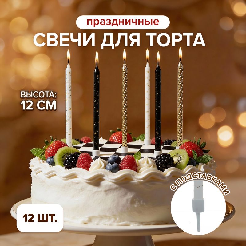 Набор свечей для торта "Праздничные", PARTY, 12 шт., в ассортименте