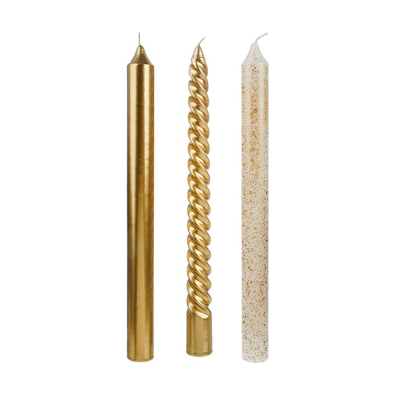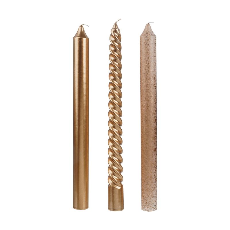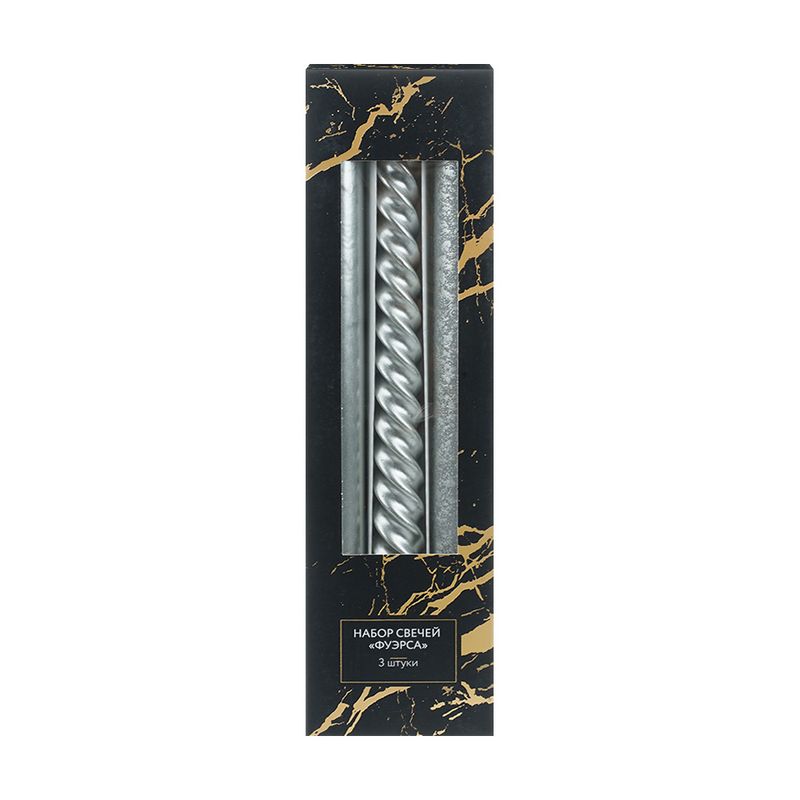 Набор свечей "Фуэрса" – прекрасный выбор для украшения праздничного интерьера и сервировки! В наборе 3 свечи. В ассортименте представлены наборы свечей в серебряном, золотом и бронзовом цветах. Состав: парафин, хлопок.
